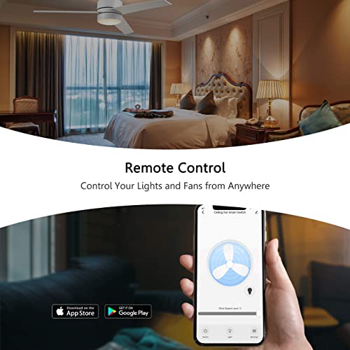 [SMART HOME AUTOMATION]: Adjust fan speed and turn on/off your lights from anywhere with a smartphone. CarroHome Ceiling Fan Smart Switch works with Amazon Alexa, the Google Assistant, Siri, and more while you connect with our CarroHome FREE app. CarroHome Smart Ceiling Fan Switch offers hands-free simple voice command to keep an eye on lights and fans. Create schedules and easily set timer to robotically turn light and fan on/off with the preset times to thrust back potential intruders.