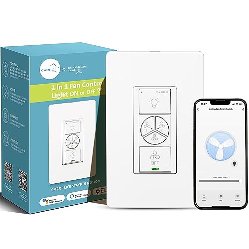 Specification: Carro Light & 3 Speed Ceiling Fan Control Switch, Works with Compatible with Alexa and Google Home, Schedule Timer, Neutral Wire Required, Remote Control with App/Wi-Fi