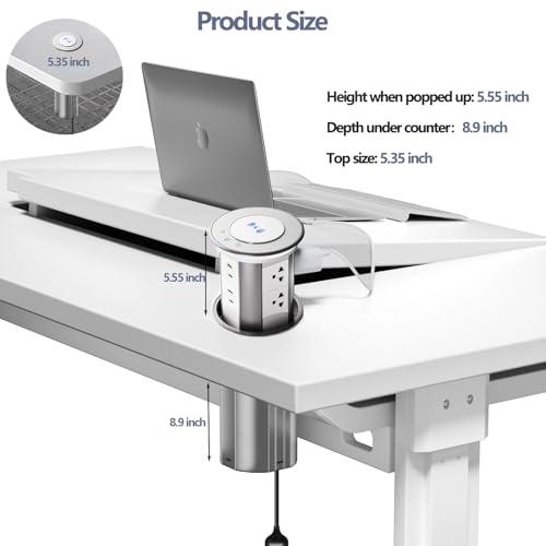 【Save Space】When the pop up socket is concealed, the socket will sink to 10 inches beneath your desk.