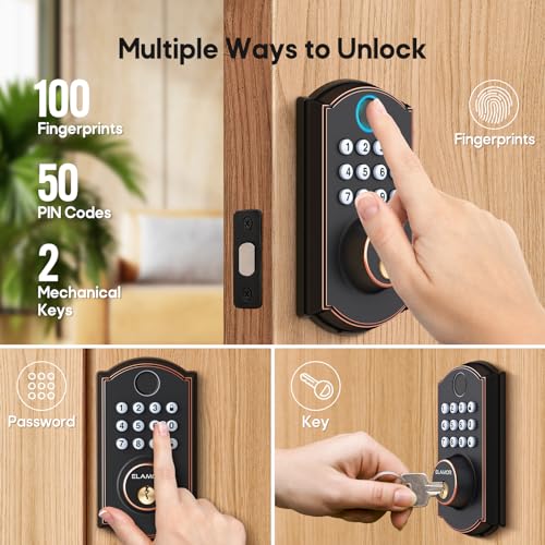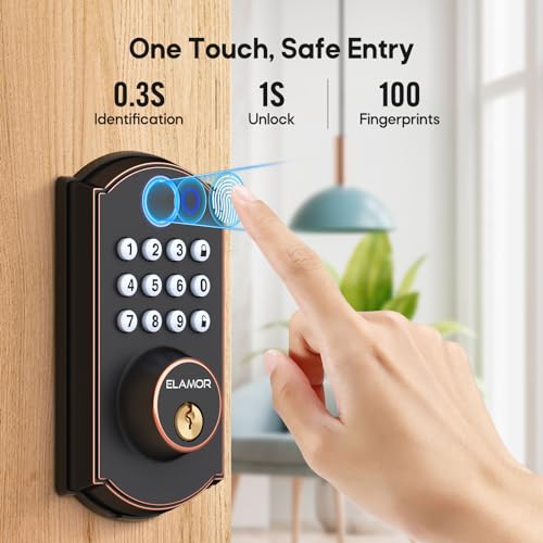 ELAMOR Fingerprint Door Lock – Keyless Entry Door Lock – Smart Locks for Front Door – Electronic Keypad Deadbolt Lock – Digital Door Lock with Code – Biometric Door Lock – Auto Lock – Easy to Install