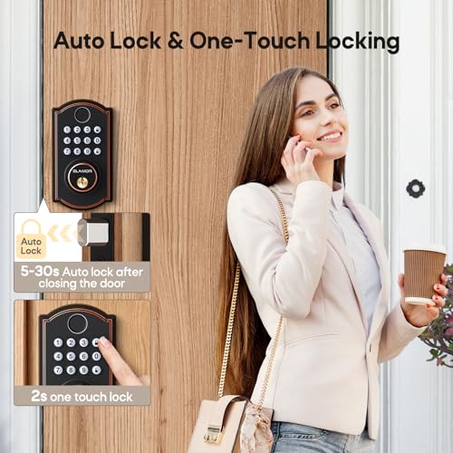[Auto Lock & One-Touch Locking] Our front door locks are furnished with an adaptable automatic locking function, which can also be tailored to activate anywhere from 5 to 30 seconds after unlocking. This provides assurance that, without reference to distractions or haste, your door will independently toughen itself, preserving your home’s security. Alongside this automated locking feature, our front door smart locks also give you the ease of one-touch locking