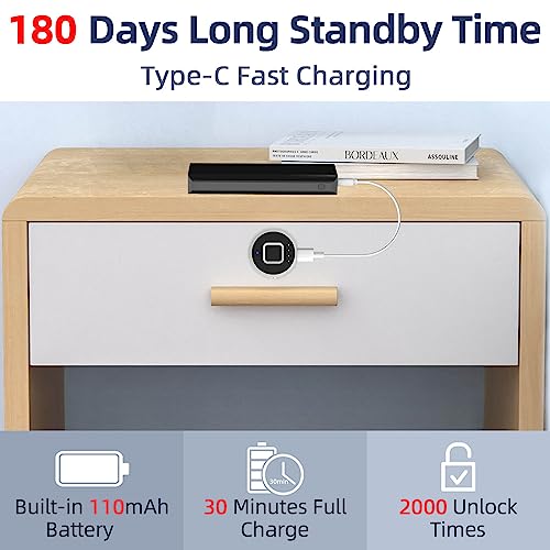 🔒【Long Battery Life】: This fingerprint lock has low power consumption and built-in a 110mAh rechargeable lithium battery, which can last standby for 6 months and be unlocked about 2000 times after fully charged, and is equipped with a USB-C cable for fast charging.