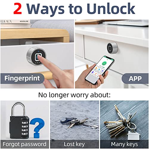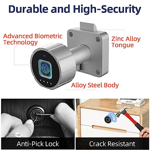 🔒【Fingerprint Unlock】: Fingerprint cabinet lock uses advanced biometric technology, touch your finger to fingerprint unlock within 0.2 seconds, the unlocking speed is much faster than peculiar rope locks and key locks. Your finger is the important thing, no longer worry about losing the important thing or forgetting the password.