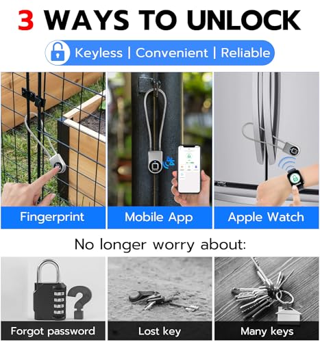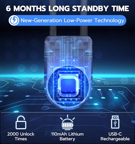 🔒【APP UNLOCK AND CONTROL】: The smart padlock with App controlled through Bluetooth connection, easy fingerprint management, App check unlock records, and share unlock permission in your friends and family remotely, helping you create a smarter and more convenient life.