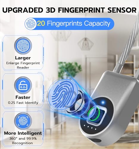 🔒【FINGERPRINT UNLOCK】: Fingerprint padlock uses advanced biometric technology, touch your finger to fingerprint unlock within 0.2 seconds, the unlocking speed is much faster than bizarre rope locks and key locks. Your finger is the important thing, no longer worry about losing the important thing or forgetting the password.