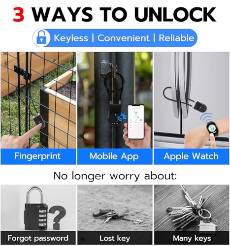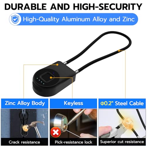 🔒【APP UNLOCK AND CONTROL】: The smart padlock with App controlled through Bluetooth connection, easy fingerprint management, App check unlock records, and share unlock permission for your friends and family remotely, helping you create a smarter and more convenient life.