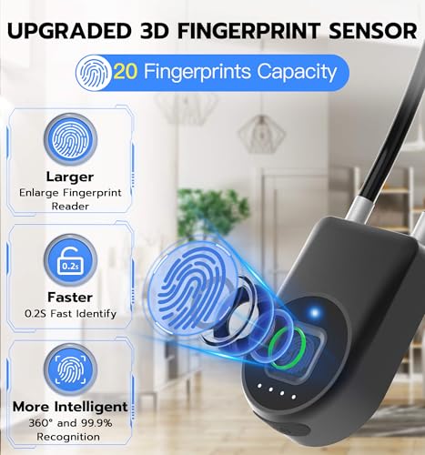 🔒【LONG BATTERY LIFE】: This fingerprint lock has low power consumption and built-in a 110mAh rechargeable lithium battery, which is able to last standby for 6 months and be unlocked about 2000 times after fully charged, and is equipped with a USB-C cable for fast charging.