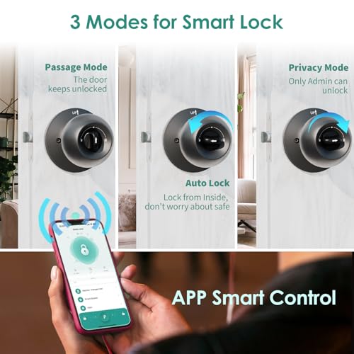 【Keyless Thumbprint Entry Door Lock】: Finger print door knobs recognizes your unique fingerprint fast and accurately, door opening within 1 second, stored up to 20pcs, the fingerprint recognition rate is as high as 99%. And your fingerprints data only store in local APP, guard your family safety and personal information. The app allows you to manage fingerprints, view unlocking records, and switch modes remotely