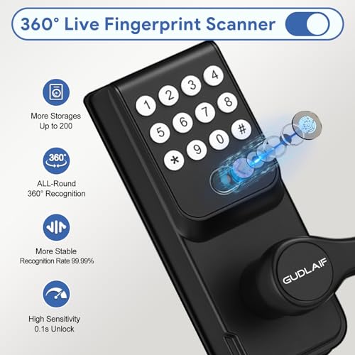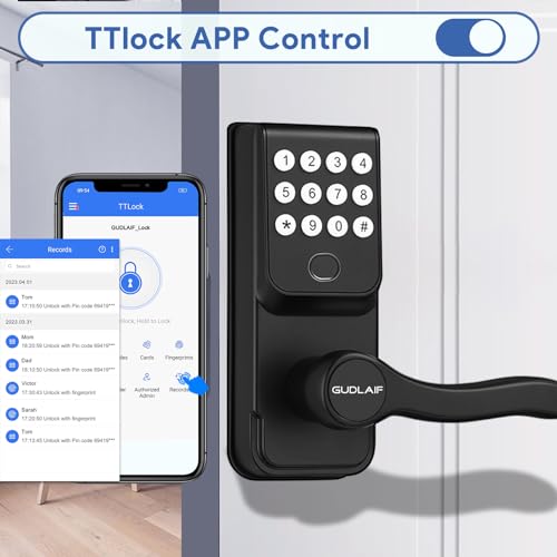 [Secure Smart Door Lock] The GUDLAIF smart lock supports anti-peeping virtual password. When unlocking, you can add any random code before and after your unlocking password. Also, app Ttlock can offer remote monitoring and let you easily know who and when and how to unlock the lock(Requires the use of a Gateway). All unlocked records will also be synchronized to the app.