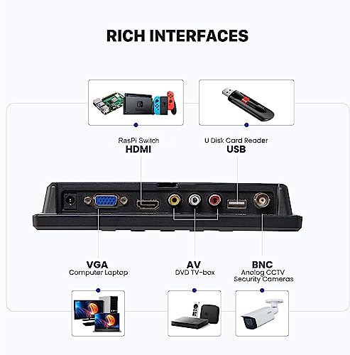 𝐕𝐞𝐫𝐬𝐚𝐭𝐢𝐥𝐞 𝐂𝐨𝐧𝐧𝐞𝐜𝐭𝐢𝐯𝐢𝐭𝐲: Connect your devices seamlessly with the Eyoyo small monitor. It has rich video input interfaces, including HDMI, VGA, BNC, USB, and AV video inputs, which can meet the needs of PC, laptops, security CCTV cameras, Raspi 4/3/2/1, DVD, VCD, TV-Box, U Disk, car backup monitoring, PS4, X-BOX. Also, you can use it as a small TV by connecting it to a TV box.