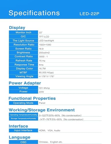 Real HD Security Camera Monitor Screen, 22 Inch 1080P Thin LED PC Monitor with HDMI VGA Built in Speaker Compatible with CCTV Security DVR NVR