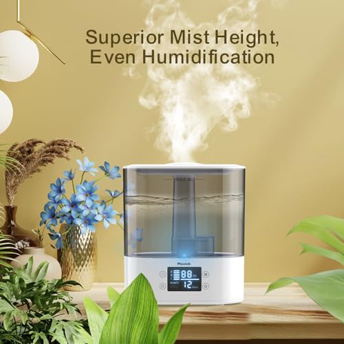 4-Liter Large Water Tank: Built-in humidity sensors adjust humidity levels to maintain a consistent and healthy environment. With 24 Watts of power, the impressive 4-liter tank provides up to 40 hours of moisture, allowing you to sleep comfortably for four nights with just one refill! Say goodbye to concerns about nasal congestion, coughing, or dry mouth during sleep. This humidifier is ideal for bedrooms, baby nurseries, offices, and indoor plants.