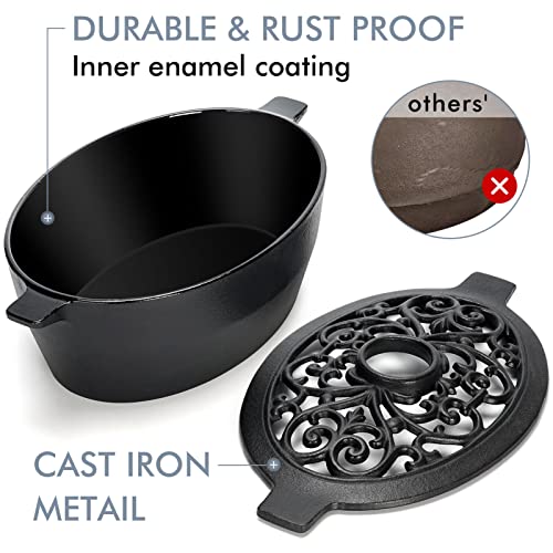 INNO STAGE Wood Stove Steamer, Cast Iron Humidifier for Stove, Home Indoor Decorative, Matte Black Finish, Rust Resistant, Lattice Top, 2.5 Quart Capacity, Patented