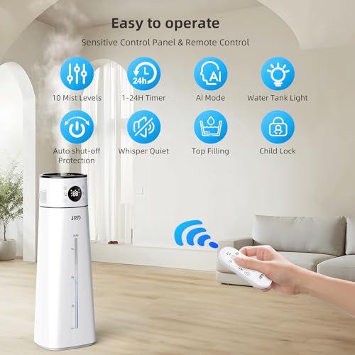 Specification: Ultrasonic Cool Mist Humidifier for Large Room Bedroom, 8L/ 2.1Gal Top Fill Humidifier with Remote Control, 10 Mist Modes, 24H Timer, AI Mode, Quiet Humidifier for Baby Home Adults Plants