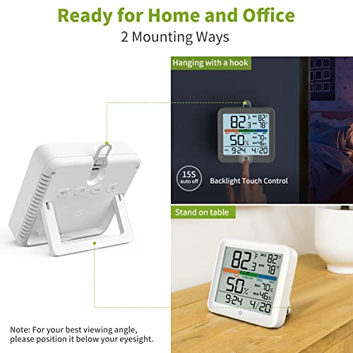 Intuitive Display with Backlight – With a glance at the 3.7 inch LCD screen, you’ll be able to see the current temperature, humidity, Max/Min Records, a 3-color 9-level air comfort indicator bar, clock time and date. Built in with a touch keep an eye on 15 seconds backlight, you’ll be able to easily check readings at night or in a dim room
