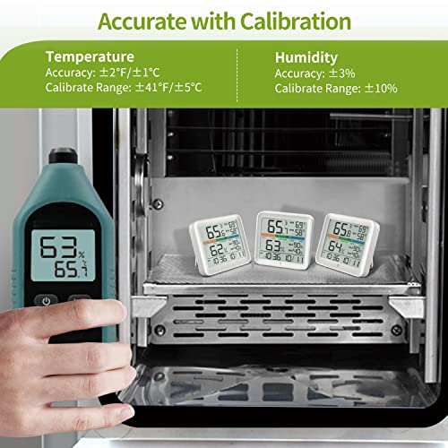 Accurate with Calibration – MeesMeek thermometer and hygrometer combo device has built-in advanced sensors which is pre-calibrated at the factory with accuracy of +- 2 °F and +- 3% RH, and it also has a calibrate function that allows you to calibrate it at any time for more accurate and reliable readings