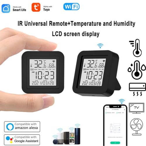 Smart WiFi Temperature Humidity Sensor with IR Remote Control for Home Automation Air Conditioner Greenhouse Pet Garage Humidity Control, Compatible with Alexa Google Assistant Tuya SmartThings