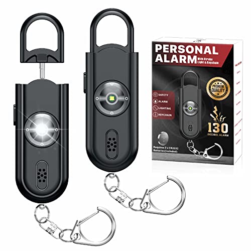 Specification: Personal Safety Alarm Keychain for Women 2PCS -130 dB Loud Siren with SOS Strobe Light, Flashlight, Double Speakers, Safety Defense Key Chain for Girls Kids Elders Emergency Call