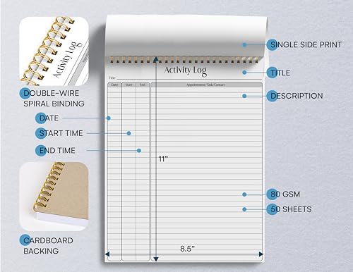 Specification: Better Office Products Activity Log Notepad, 8.5″ x 11″, Planning Note Pad, 50 Sheets, Double-Wire Spiral, Daily Time Tracking Productivity Checklist Organizer,(1 Pack)