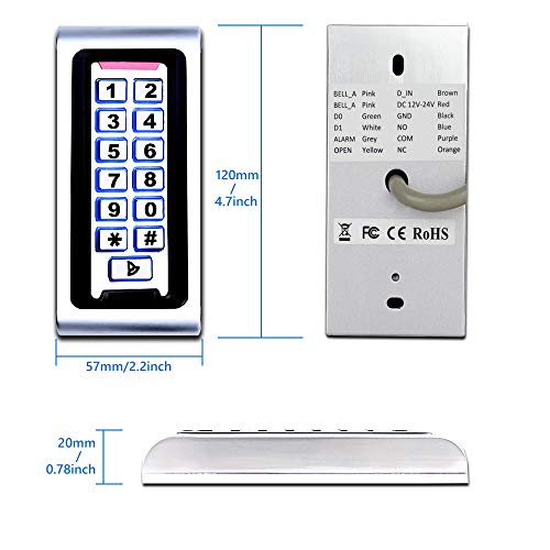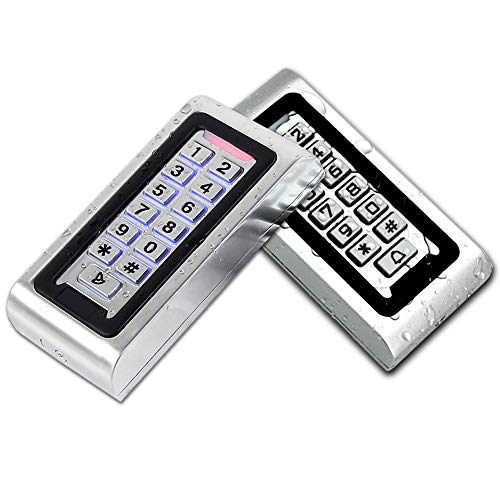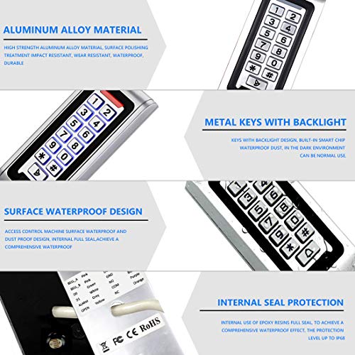 Specification: Door Access Control System Stand-Alone Password Keypad + 5PCS Proximity Keychains, Support 2000 Users Card Reader, Weatherproof, Backlight, Zinc Alloy Metal Case, for Garage Door, Gate Opener