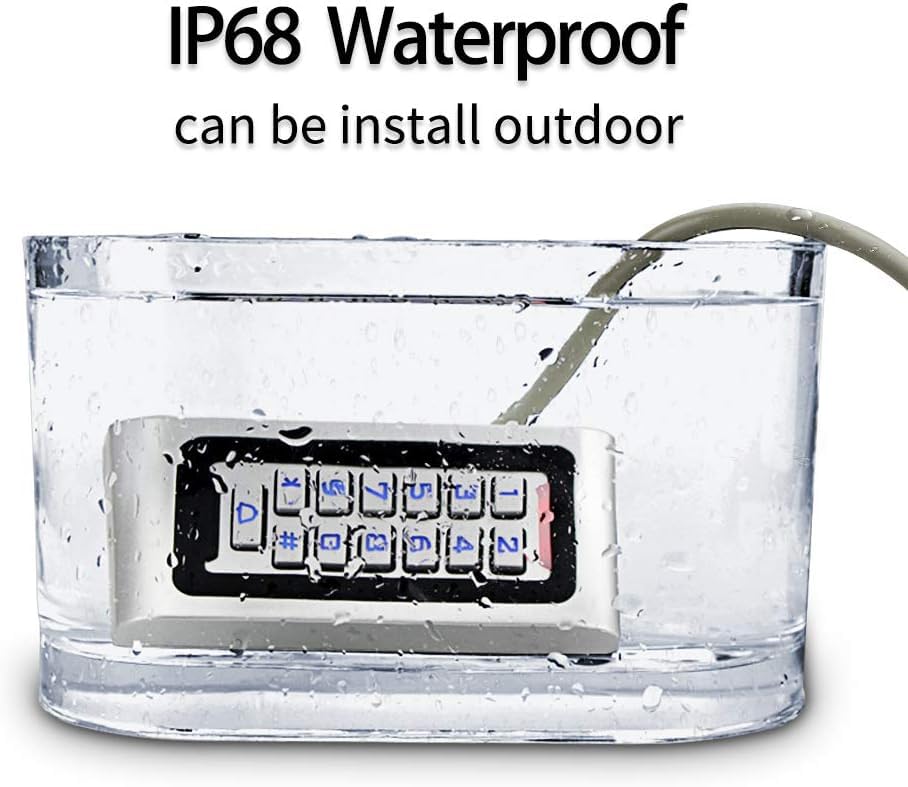 Specification: Outdoor IP68 Waterproof Access Control System Metal Plate Keypad +180KG/320lbs Electric Magnetic Lock + DC12V 3A Power Supply + 10pcs Keyfobs Tags Security System
