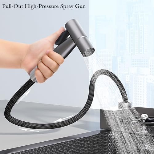 【Brand new sink upgraded features】: ① cell phone bracket design, at any time to receive video calls, listen to songs, meet up with the drama; ② pull boost spray gun, you’ll keep watch over the strength of the water waft is easier to clean the sink; ③ wash cups, five water keep watch over design, gently press the high-pressure rinse does not leave dirt; ④ sharpening rod, hidden in the sink does not take up space, wide deal with design, easy to use and easy