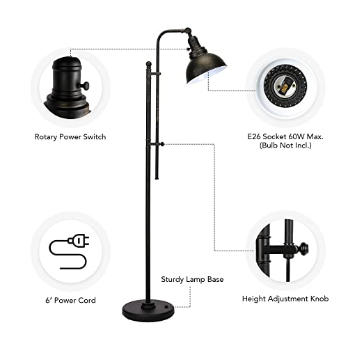 FULLY ADJUSTABLE: Adjust height between 55” and 65” to accommodate various spaces. Create custom lighting moods by swiveling the lamp head 90° for uplight or downlight. You can add an Edison bulb to complete the industrial look (bulb not included).