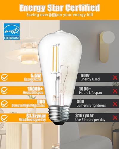 【Energy-Efficient Longevity】Upgrade to our 5.5W LED bulbs, 60 watt equivalent, save up to 91% energy with a lifespan of over 11 years based on 3-5 hours daily use.