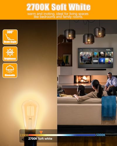【Vintage Charm with High CRI】Improve your space with our 2700K soft white Edison bulbs. High CRI enhances colors, ideal for environments like bedrooms, living rooms, dining rooms, bathrooms, laundry rooms, porches, or entryways.
