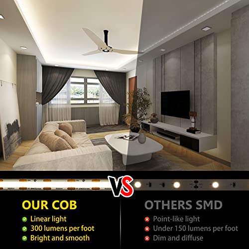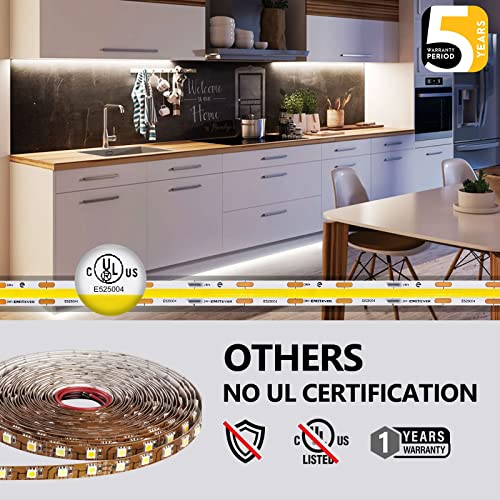 Specification: EMITEVER COB LED Strip Lights Neutral White, 4000K Tape Light Premium High Density, 24V, 300+Lumens/ft, 1200LEDs/Spool, Ra 90+, 32.8ft, 3W/ft, UL Listed 5 Year Warranty (Power Supply Sold Separately)