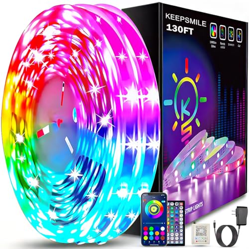 Specification: Keepsmile 130ft Led Strip Lights (2 Rolls of 65ft) Bluetooth Smart App Control RGB Led Light Strip with Remote,Music Sync Color Changing Led Lights for Bedroom Room Home Party Decor