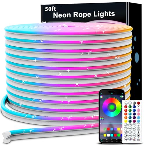 Specification: KIKO 50ft Neon Rope Lights, 15m Neon Led Strip Lights Remote APP Control,IP67 Outdoor Neon Lights Music Sync Led Rope Lights DIY Mode Neon Flex Strip Lights for Bedroom Indoors Outdoors Decor