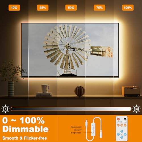 【Dimmable with RF Remote Control】The RF (radio frequency) remote control with 13 keys allows you to control the strip light in any area (360°) within 99ft(30m). Four timer setting functions satisfy you to set the ON and OFF time of the light strip well. 3-level dimming function (25%, 50%, 100%) meets your brightness needs in different scenarios. The perfect memory function can keep the last setting when you turn on your light without having to set it repeatedly.