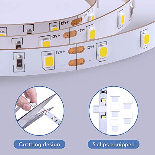 Set up in Minutes: Simply stick the LED light strip on clean, dry surface to be used. Cutting design allows you to trim it by way of cutting mark and decorate anywhere you need. Strong adhesives and 10 clips equipped hold lights strip in place firmly.