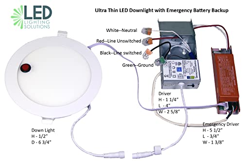 Specification: LED & Lighting Solutions LED 4″ Dimmable, Ultra-Slim LED Recessed Downlight w/90 Min Emergency Battery Backup, 9w, CCT Selectable 2700K-6000K, 720 lumens, 80 CRI, UL/ETL/IC/Damp Rated, Energy Star