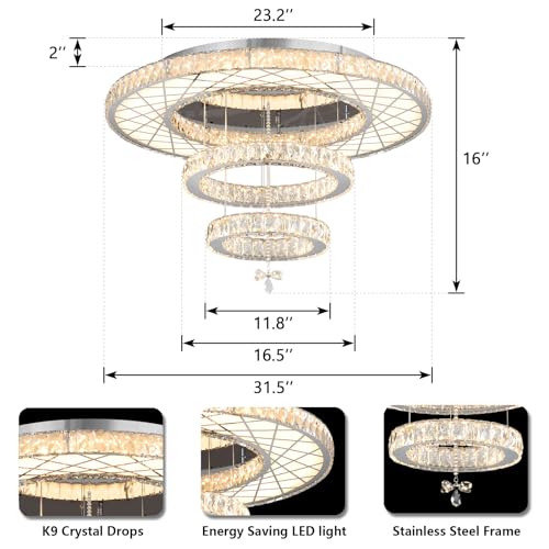 Specification: 32″W Modern Chandeliers Living Room Light Crystal Flat Mounted Ceiling Lights Dining Room Light Bedroom Ceiling Drop Lighting Fixture Remote Dimmable Lights Bright Light with Dimming Night Light LED