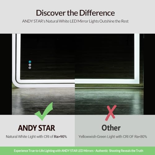 【RGB Backlit+Front-lit, Double Lighting Sources】: Andy Star white frame rgb led bathroom mirror is designed with both backlight and front light; providing twice the brightness for doing makeup; skin care; shaving and dressing up; Super bright
