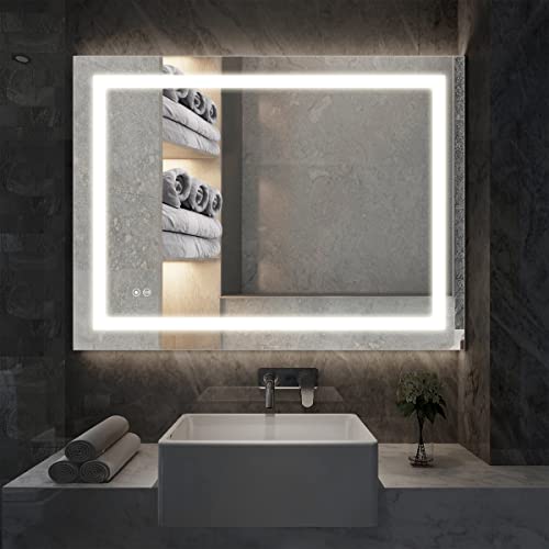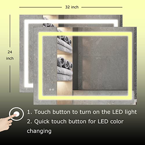 illucid LED Bathroom Mirror Wall Mounted 32×24 inch Dimmable Anti-Fog Crystal Clear & Shatterproof Vertical/Horizone Flicking-Free Hard Wired LED Vanity Mirror