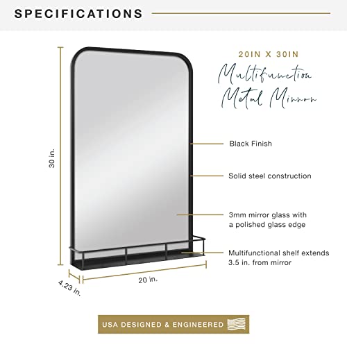 MCS Multifunction Large Wall Mirror with Shelf, 20×30 Inch, Black