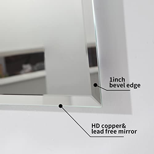 PREMIUM QUALITY: Mirrorons bathroom mirror is made of 4mm copper-free heavy-duty material, which is more durable and eco-friendly than normal copper plating mirrors. With polished edges, the mirror is secure and protected.