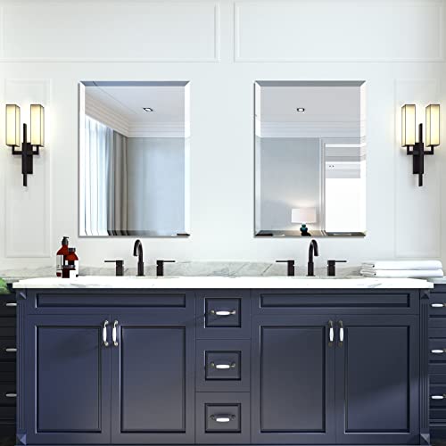 Mirrorons Beveled Mirror, Bathroom Mirrors for Wall 20″ x 28″, Frameless Rectangle Bathroom Mirror with Beveled Edge, Hangs Horizontally or Vertically, Upgraded Packing