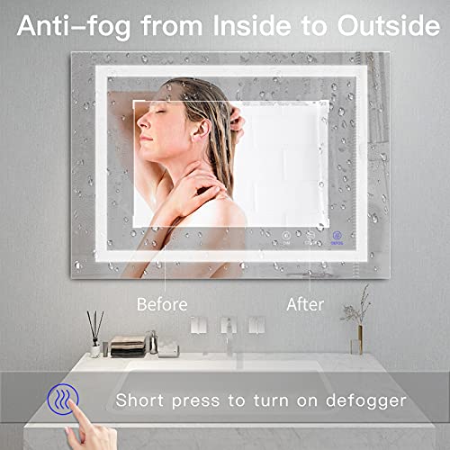 Specification: TATU LED Bathroom Mirror, 32×24 Inch Bathroom Vanity Mirror Wall Mounted with 3000K-6000K Adjustable, Anti-Fog, Smart Touch Button, Stepless Dimmable Lighted Makeup Mirror, Horizontal/Vertical