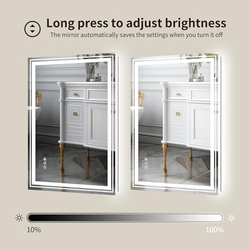 Enhanced Shatterproof & Corrosion Proof: Crafted with 5 MM tempered glass, our LED mirror for bathroom is durable and resistant to shattering, and even it is broken, It’s going to not shatter to sharp pieces, providing high safety for you and your circle of relatives. With the epoxy coat, our lighted mirrors can corrosion proof for a long life;