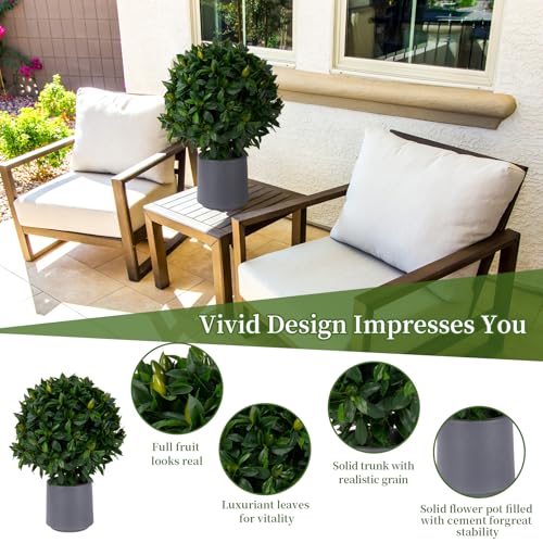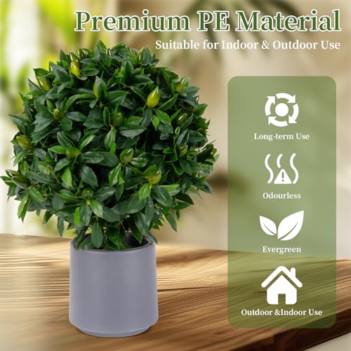 Artificial Cedar Topiary Ball Tree 24”T Artificial Pine Tree Potted Shrubs UV Resistant Outdoors Plant for Home Office Outdoor and Indoor Decor Porch Plants
