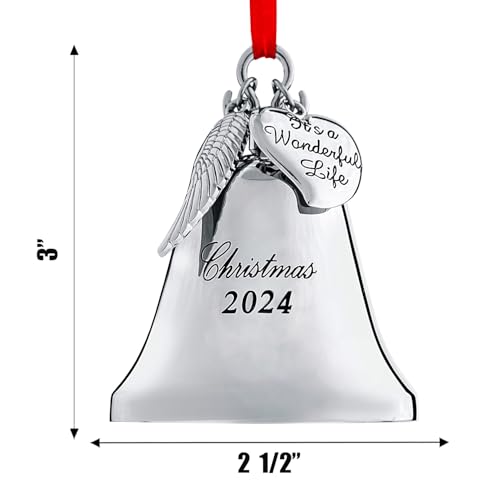 Specification: Klikel Christmas Bell Ornament 2024 – Its A Wonderful Life Bell Christmas Ornament 2024 – Christmas Bell 2024 Ornament – Bell Ornament for Christmas Tree – Christmas Bell with Hanging Wing and Heart
