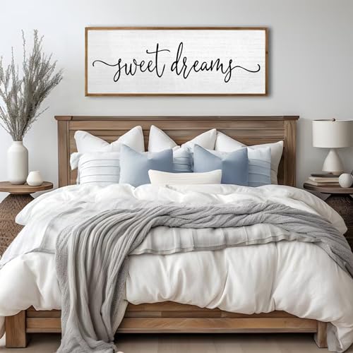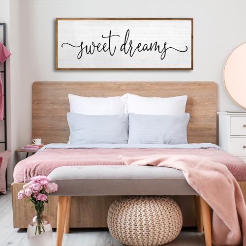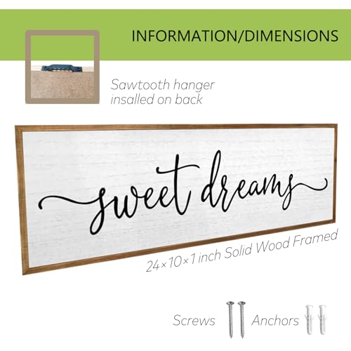 Specification: Sweet Dreams Wall Decor Above Bed Sign 24”×10” Large Wood Framed Master Bedroom Guest Room Sweet Dreams Signs Farmhouse Rustic Wall Art Decoration (Wood)