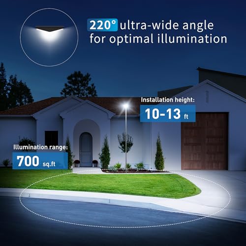 [EASY INSTALLATION AND IP66 WATERPROOF] Our solar parking zone lights comes with all necessary installation accessories and requires no wiring. Simply fix the base where you wish to have to install it. The solar street lights outside waterproof are suitable for patios, parking lots, garages, gardens, pathways, streets, and yards, meeting diverse lighting needs effortlessly. With an IP66 waterproof rating and made from high-quality ABS and die-cast aluminum bracket, it is sturdy and durable, capable of withstanding rain, high temperatures, low temperatures, and other extreme weather conditions.