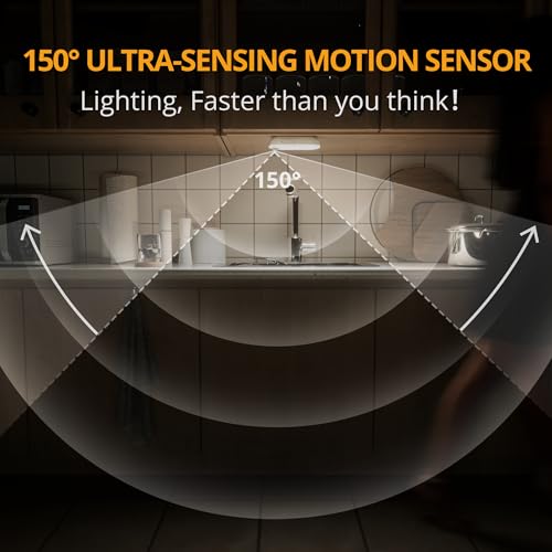 Motion Activated: This motion sensor closet light adopts the new upgraded PIR, compared with the previous generation version, the sensing distance is increased from 10ft to 16ft, and the sensing angle is increased from 120 degrees to 150 degrees; the overall improvement rate reaches 69%, which makes the sensing more sensitive