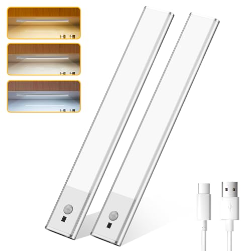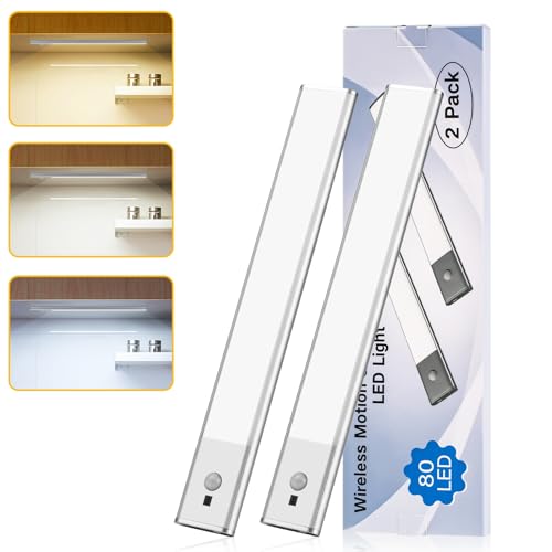 Under Cabinet Lights – Closet Light 1500mAh Premium 80 LED, Rechargeable 3 Color Temperatures,Wireless and Motion Sensor Lighting for Wardrobe, Cupboard, Kitchen, Stairs (2pcs of Pack)