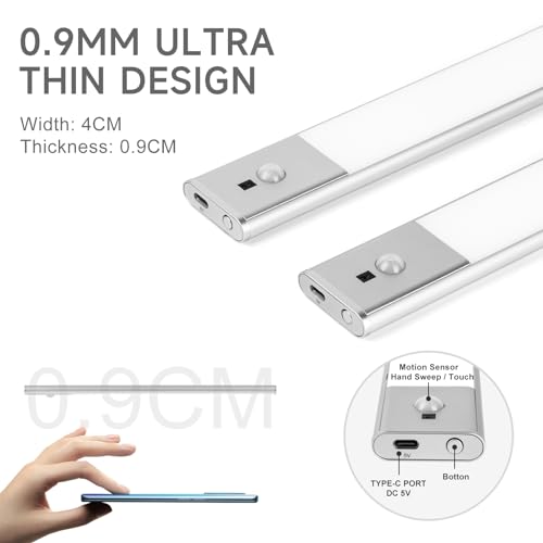 【1500mAh Large Capacity Battery】:Charge the under cabinet lights by plugging the included USB-C charging cable into a PC, socket, or power bank, The inbuilt 1500mAh lithium battery about 3 hours to get a full charge and powers the LED light for 60 to 90 day (if the light is activated five times a day). No wiring required, no want to replace batteries, more energy-efficient and environmentally friendly. Charge on occasion but benefit daily.